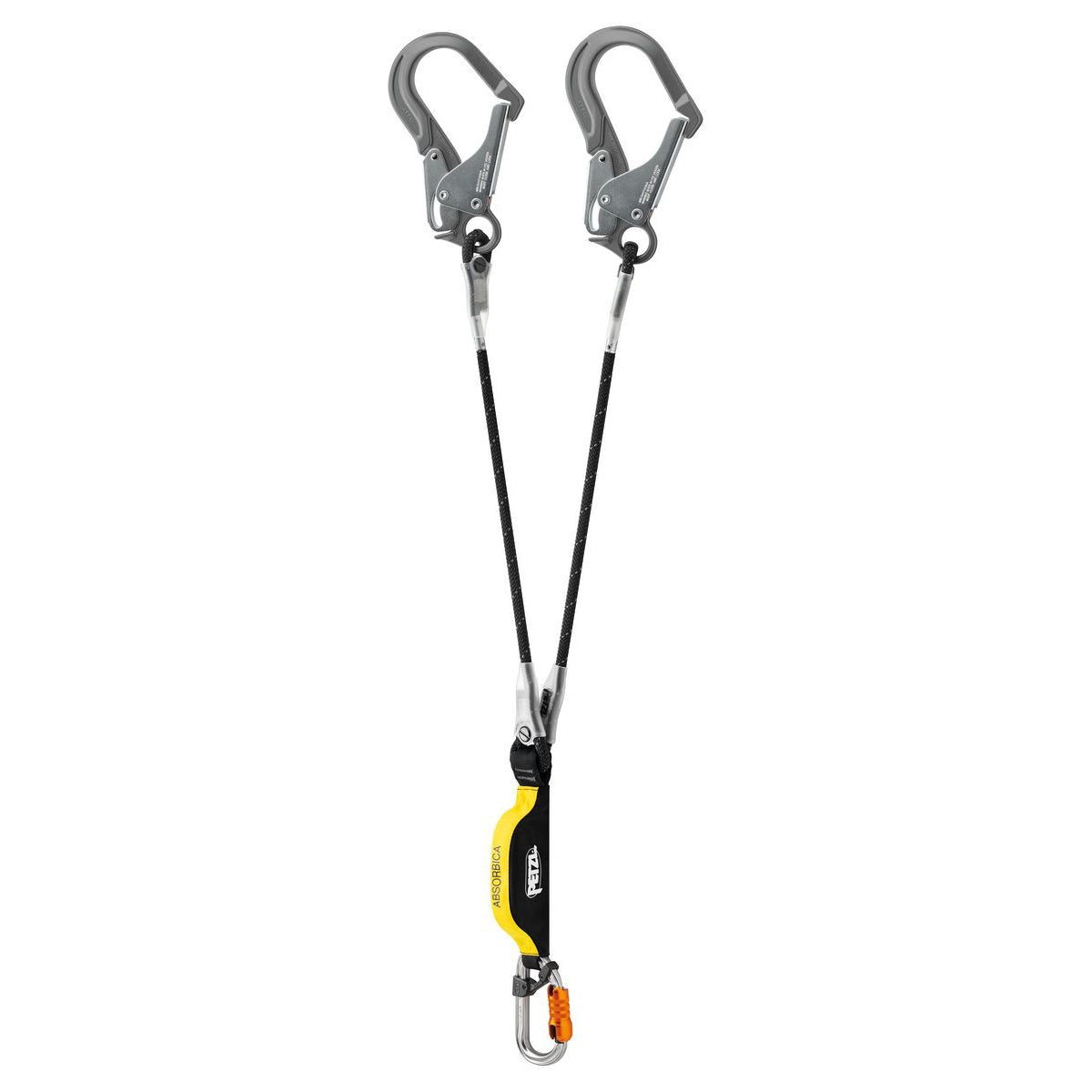 ABSORBICA-Y MGO is a double lanyard with compact energy absorber, designed for progression on a vertical structure or a horizontal lifeline and when passing intermediate anchors. It is available in two lengths: 80 or 150 cm versions (without connectors). The 150 cm version has elasticized arms, to avoid hindering progression. Equipped with two large-opening MGO connectors and a Bm’D connector with a CAPTIV positioning bar, it is certified to American, European and Russian standards.
