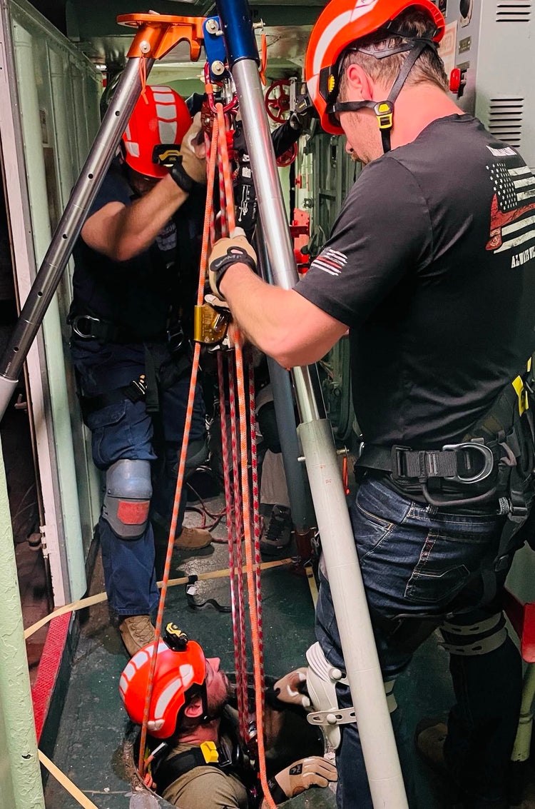 This class is designed and intended for the industrial and/or fire department rescuer. This course is a hybrid of rope rescue and confined space training for entry and rescue. It will teach high angle rescue techniques which will allow the student to develop proficient skills in any industrial setting.