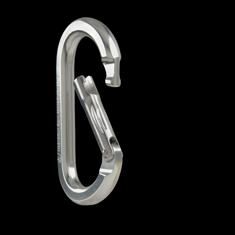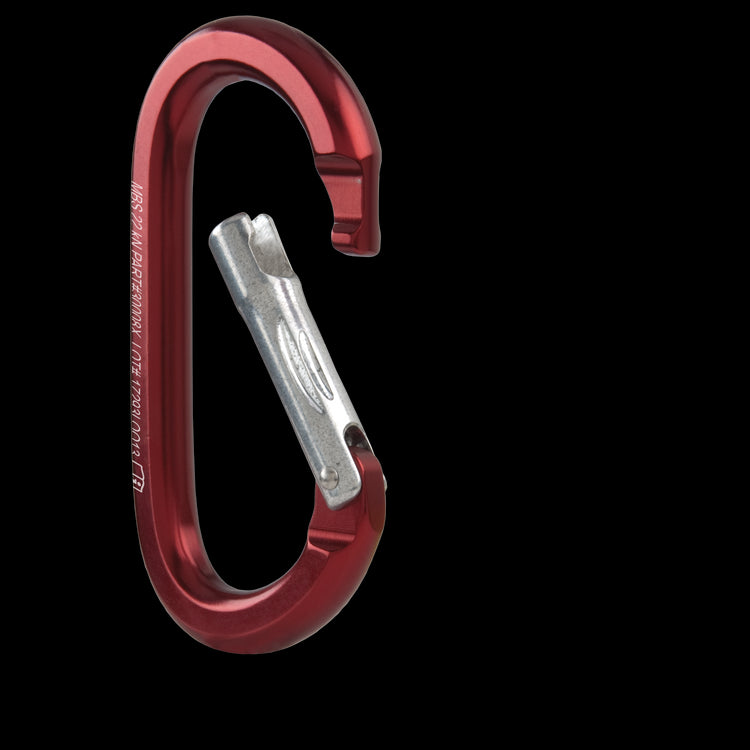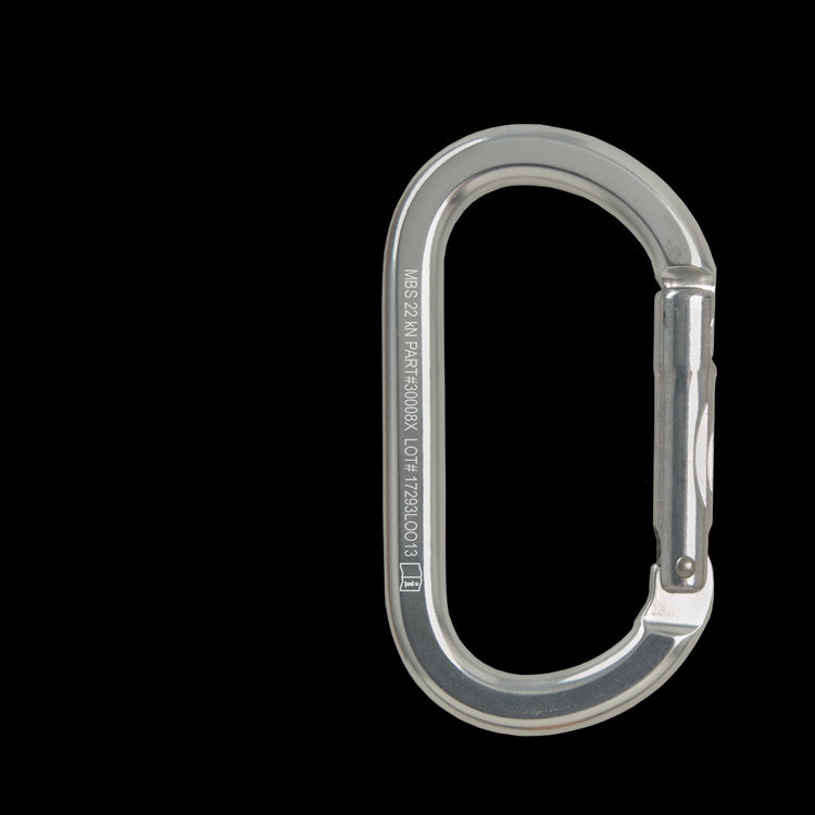 Non-locking carabiners can be used for racking equipment or as the keeper carabiner on a load-release strap or mariners hitch. Non-locking carabiners should always be used in pairs, rigged opposite and opposed. Our oval aluminum carabiner features a unique key-lock design for snag-free operation and a side-swing gate for maximum gate opening. The oval design places equal amounts of force on the spine and gate, allowing the carabiner to maintain full rated strength regardless of the width of the web or rope clipped into it. Its also a good size to clip over the ropes coming out of a pulley to help mind a Prusik hitch.