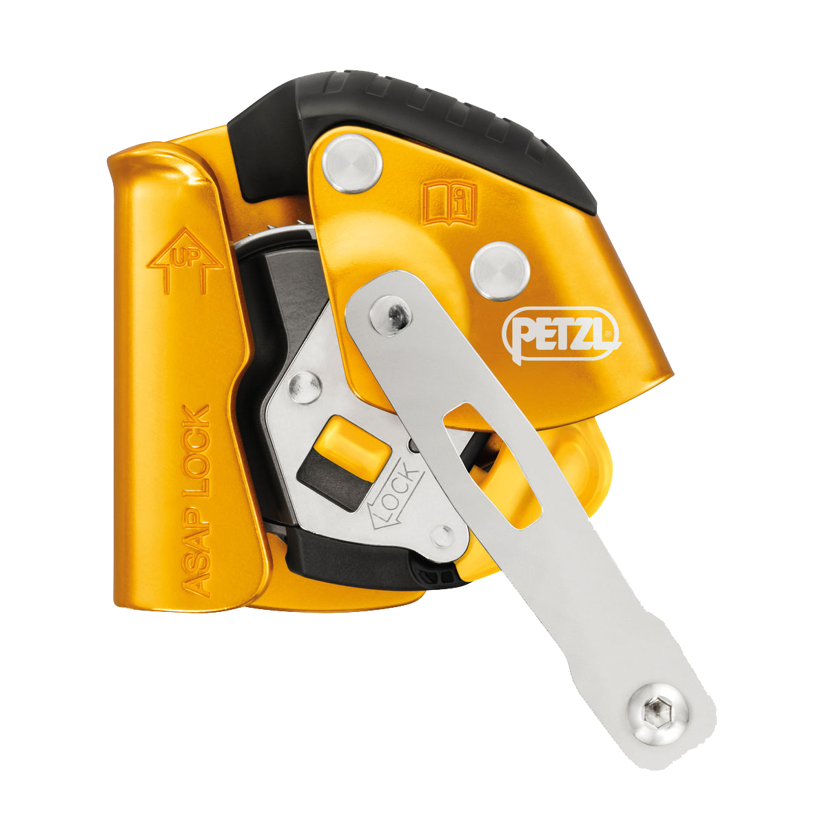 The ASAP LOCK mobile fall arrester is designed to facilitate handling during rope ascents. In normal use, the device moves freely along the rope without any manual intervention and follows the user in all his/her movements. In case of shock or sudden movement, the fall arrester locks on the rope and stops the user. The integrated locking function allows the user to immobilize the device in order to reduce the potential fall distance. The connection arm makes the system drop-resistant when passing intermediate anchors. The ASAP LOCK is used with an ASAP'SORBER or ASAP'SORBER AXESS energy absorber to work at a distance from the rope.Detailed Description