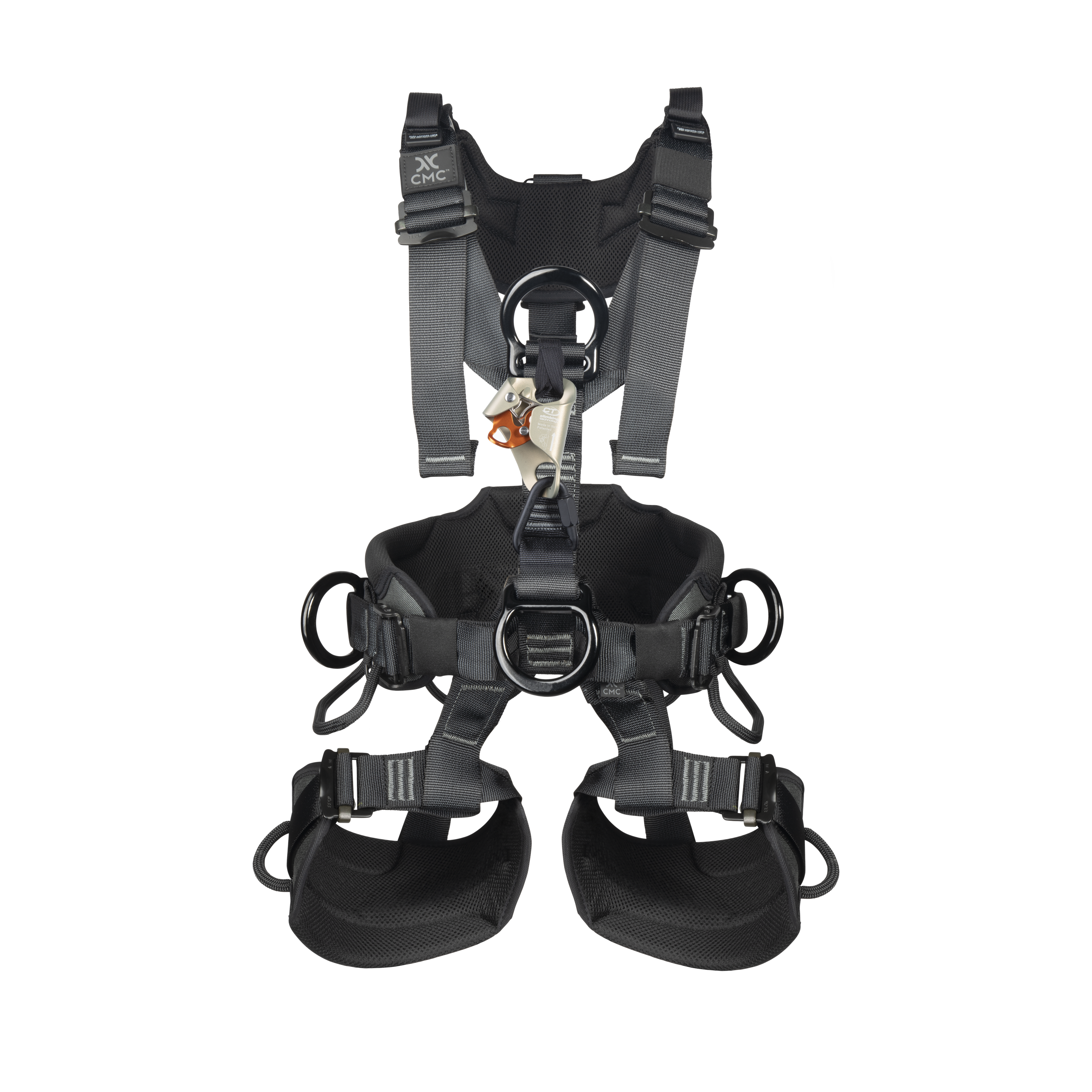 - Workseat attachment points located at the waist to connect the CMC Skysaddle.