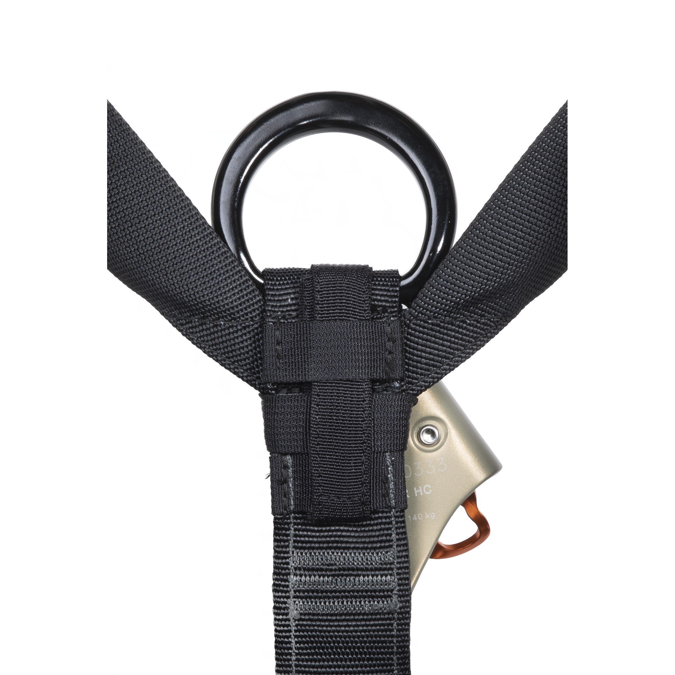 - Large ID aluminum D-rings at the waist, sternal and dorsal attachment points keep the harness lightweight, yet allows room for multiple carabiners.