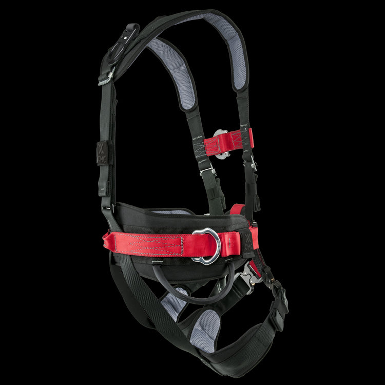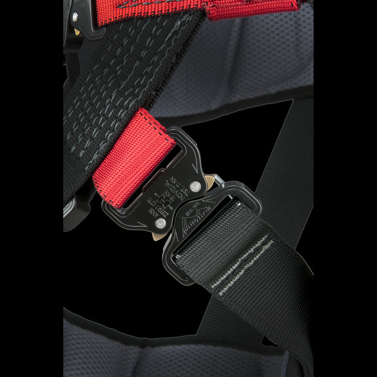 The unique design provides wraparound comfort and breathability, cradling the wearer with an ergonomically formed Jack Back and waist and leg pads that feature contoured and molded ventilation channels. The coat-style of the harness entry prevents possible contamination of the waist belt and leg loops from footwear, since there is no need to step through or over the harness to don or doff.