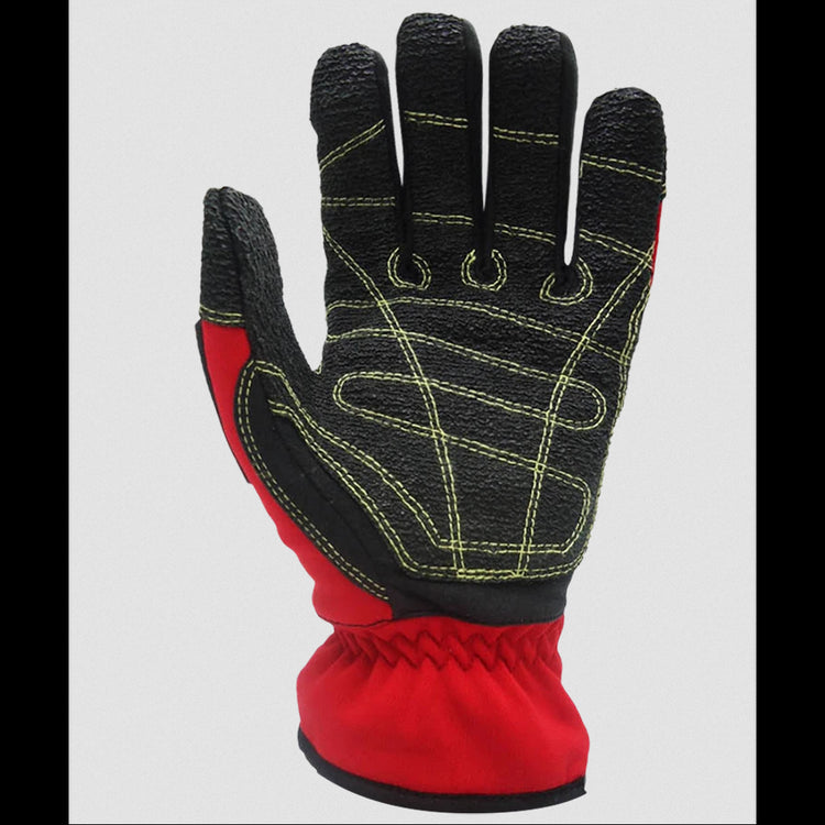 Waterproof, cut-and-puncture resistant, search and rescue gloves with a dexterous, one-piece palm that is double stitched on with Kevlar thread for gripping power and durability. Flexible Thermoplastic Rubber (TPR) on back of fingers adds impact resistance, as well as the covered urethane-rubber padding on the knuckles and back of hand. The Hipora barrier makes the gloves waterproof, while still maintaining breathability.