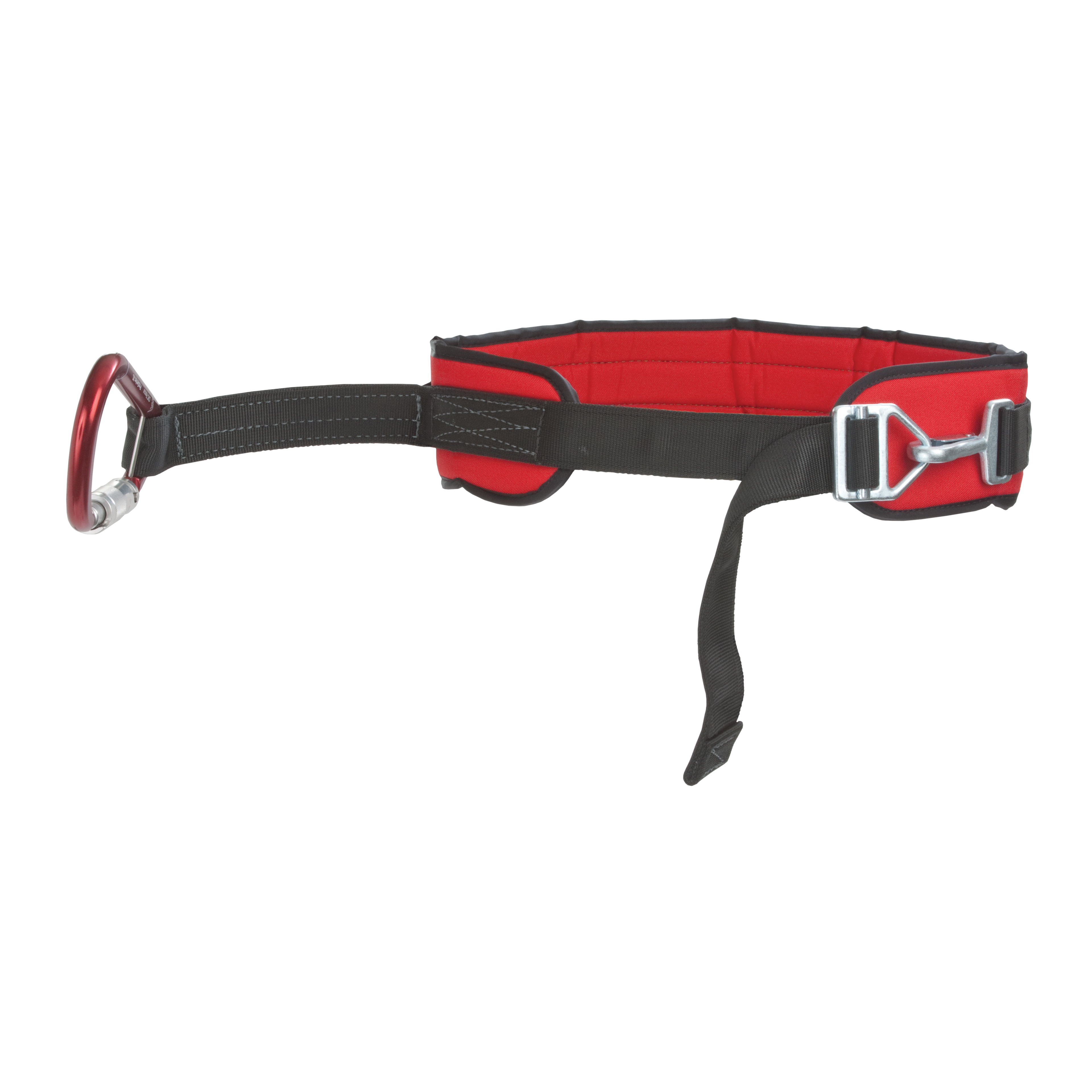 At the behest of several departments, we added a tether that extends the length of the connection out to 16-3/4 inches to reach the ladder rung. The wide padding and quick connect hardware make it comfortable and easy to don. Our lightweight auto-locking ProSeries XL Carabiner is included. Black web with red padding.