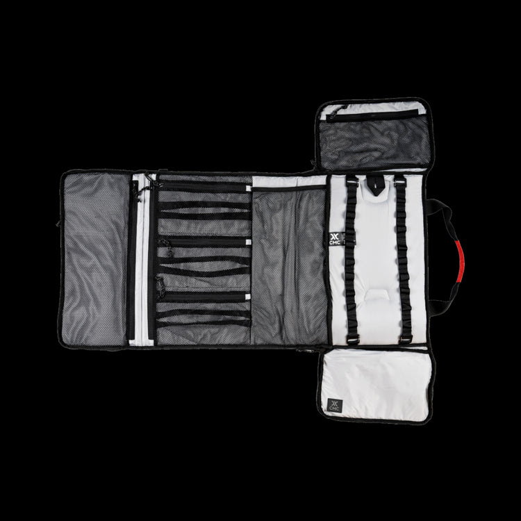 Built specifically for rope access technicians, the Lotus Tech Pack is a combination backpack and duffel bag that zips open from all sides and lays flat for maximum access to essential equipment. With 4 exterior pockets and 7 interior pockets, personal kit is easily organized and prepared for the job. Items are readily visible inside the mesh pockets, which are placed over the contrasting light gray background of the Lotus interior. A protective storage sleeve is provided for stowing a laptop, ipad, or other surface. Versatile gear loops and compression straps are sewn into the pack in key areas and removable in others, enhancing equipment storage.