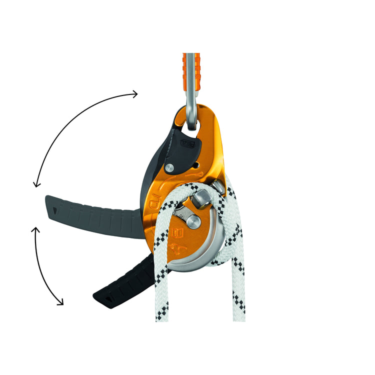 The AUTO-LOCK system allows the rope to be automatically locked without having to manipulate the handle or tie off the device. The automatic return system on the handle limits the risk of the device getting accidentally snagged