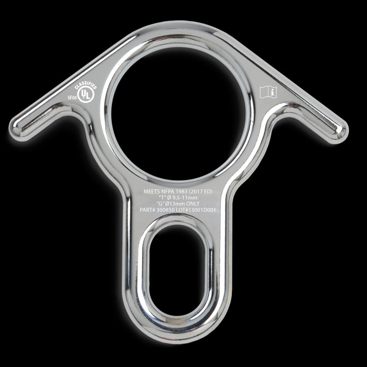 Machined from12.5-mm (1/2-inch) plate, our classic Rescue 8 design has been refined for even better performance with todays selection of life safety rope. Descenders no longer routinely use 16-mm (5/8-in) rope, so the smaller dimensions of our Rescue 8 provide greater control. The proprietary black finish on the aluminum model provides outstanding wear resistance, while the nickel-chrome-plated steel model excels in high-wear situations, such as sandy, gritty environments. The extended carabiner hole accommodates multiple carabiners.