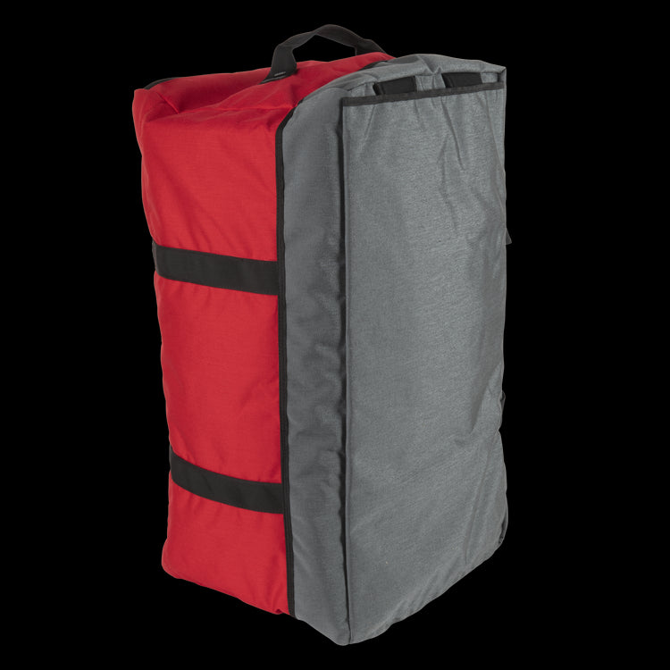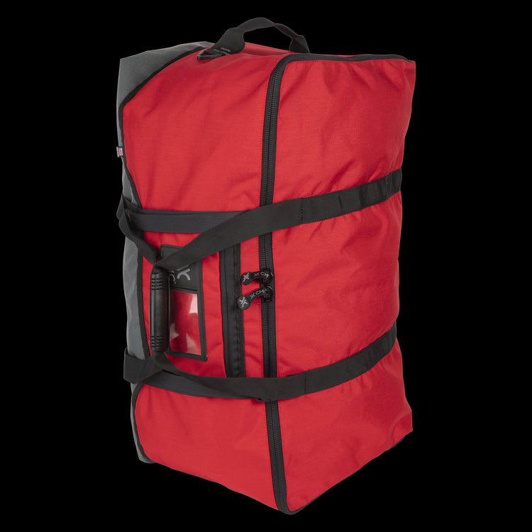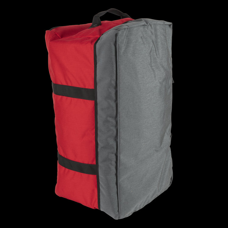 Heres a big bag, with molded quick-grip comforthandles, perfect for carrying a firefighters gear. Its also great for rescue personnel and police officers. Handles on the side and ends of the bag make it easier to drag out of your truck or car. Compression straps make the bag easier to handle. The top opens fully for access to all parts of the bag. You can pack it in an organized fashion and have quick access to your gear. A zippered side pocket keeps small items secure. The foam insert in the bottom gives the bag shape and helps to protect the contents. Bag stores flat when empty. Our most popular red Shasta is now available with hideaway shoulder straps.