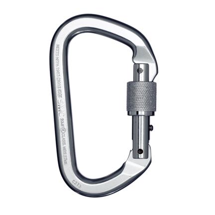 This carabiner sets the standard in climbing, mountaineering, and rescue applications. Extremely lightweight, it offers high strength and a large gate opening for functional versatility. The locking sleeve engages the gate rather than the frame to prevent jamming.