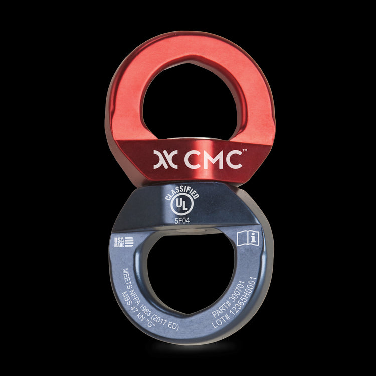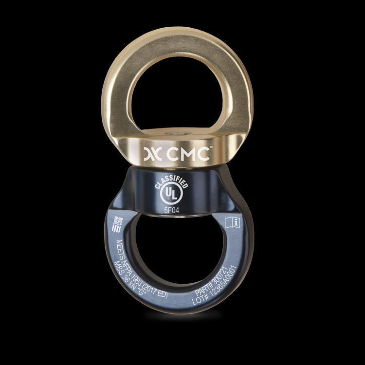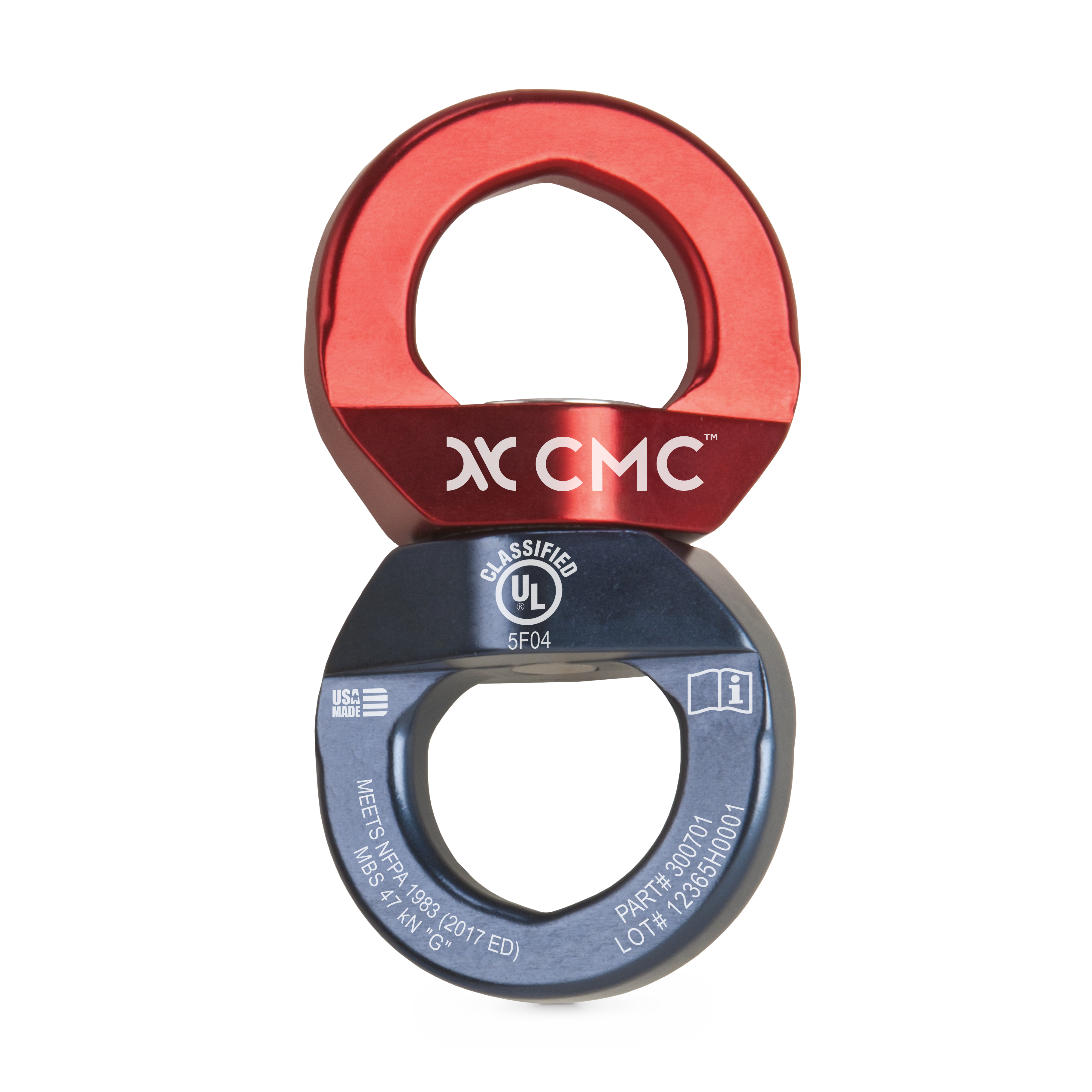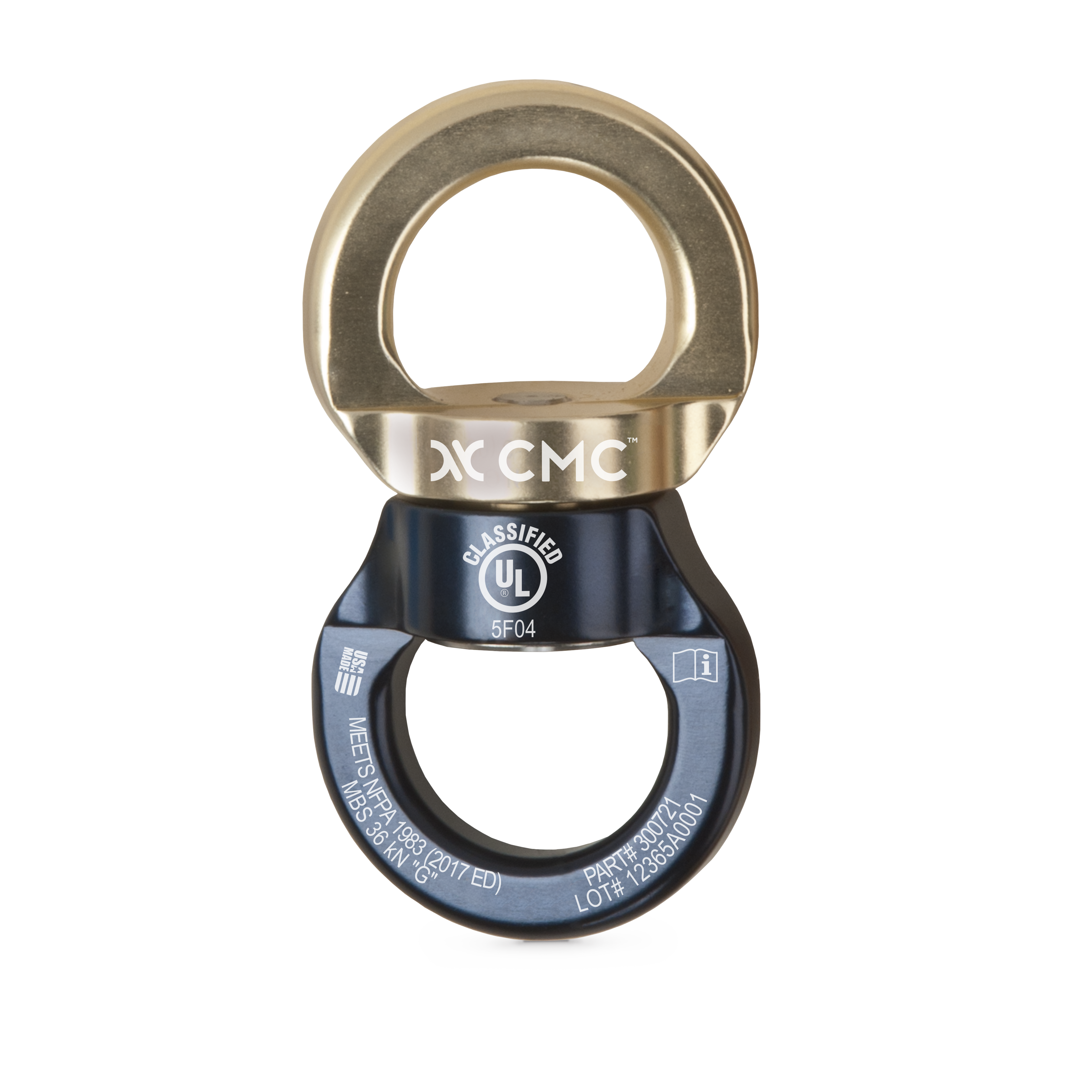 Our anodized aluminum swivels are available in two sizes to allow users to select the strength, weight and dimensions best suited to their specific needs. Whether used in a rescue haul system, helicopter operations, or rope access, the addition of a swivel can help prevent system lines from wrapping around each other, while at the same time reducing spin caused by loading a free-hanging rope.