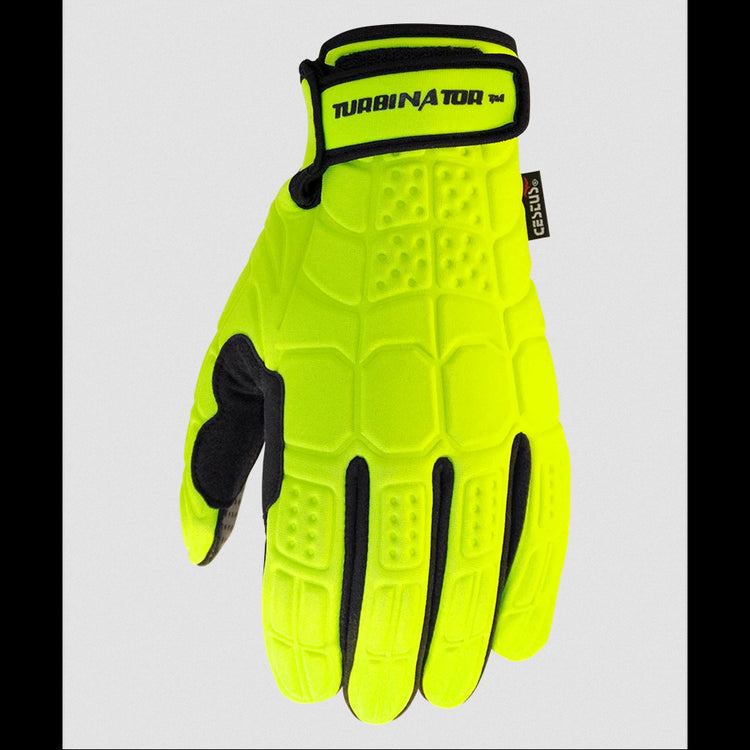 Windproof and light-weight, the Turbinator® features silicone covered Hexagonal Memory Gel® patches on the palm for strong grip and vibration absorption. Based on feedback from the wind energy industry, the Neoprene Polychloroprene back of the gloves adds wind resistance, as well as breathability and comfort.