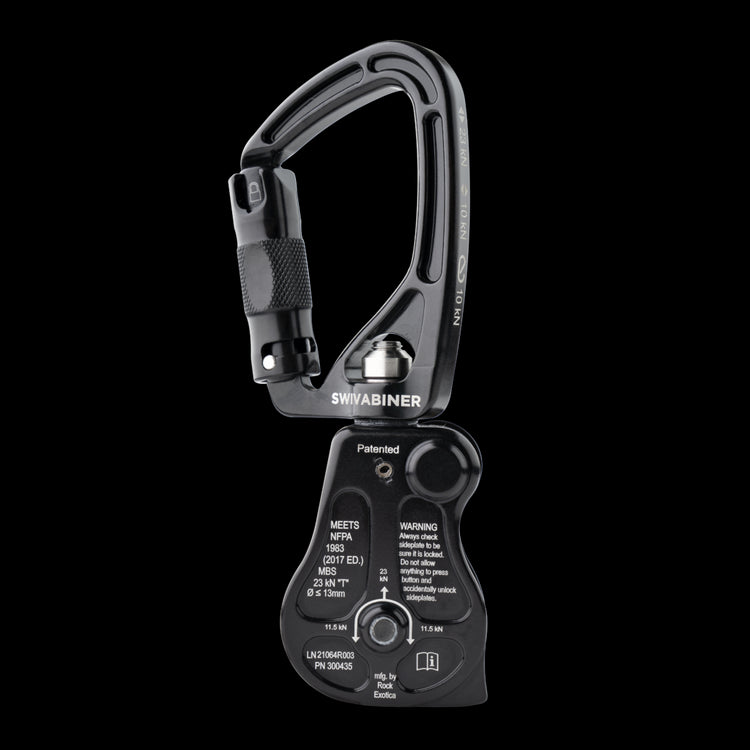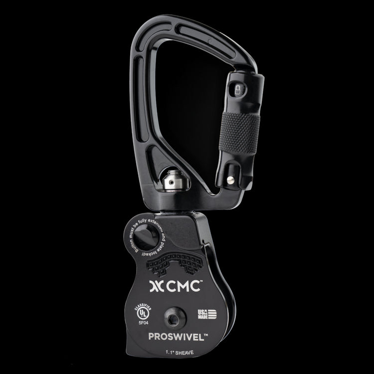 The CMC ProSwivel Pulleys combine a swivel and pulley into one tool with a unique sideplate that opens while the pulley is still attached to the anchor. Teaming up with Rock Exotica, CMC now offers more swivel pulleys certified to NFPA standards. Our renamed and expanded ProSwivel line includes eight pulleys to choose from. You can pick the best CMC ProSwivel Pulley for the job, going bigger when you need more efficiency.