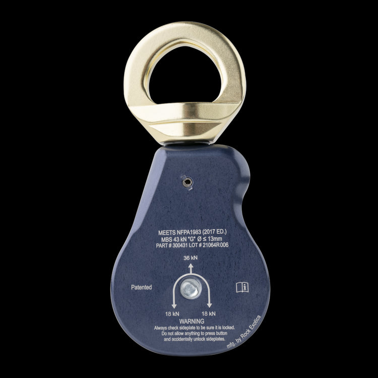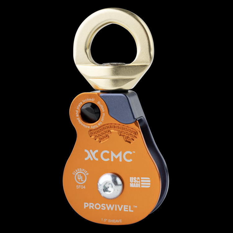 The CMC ProSwivel Pulleys combine a swivel and pulley into one tool with a unique sideplate that opens while the pulley is still attached to the anchor. Teaming up with Rock Exotica, CMC now offers more swivel pulleys certified to NFPA standards. Our renamed and expanded ProSwivel line includes eight pulleys to choose from. You can pick the best CMC ProSwivel Pulley for the job, going bigger when you need more efficiency.