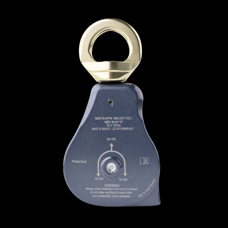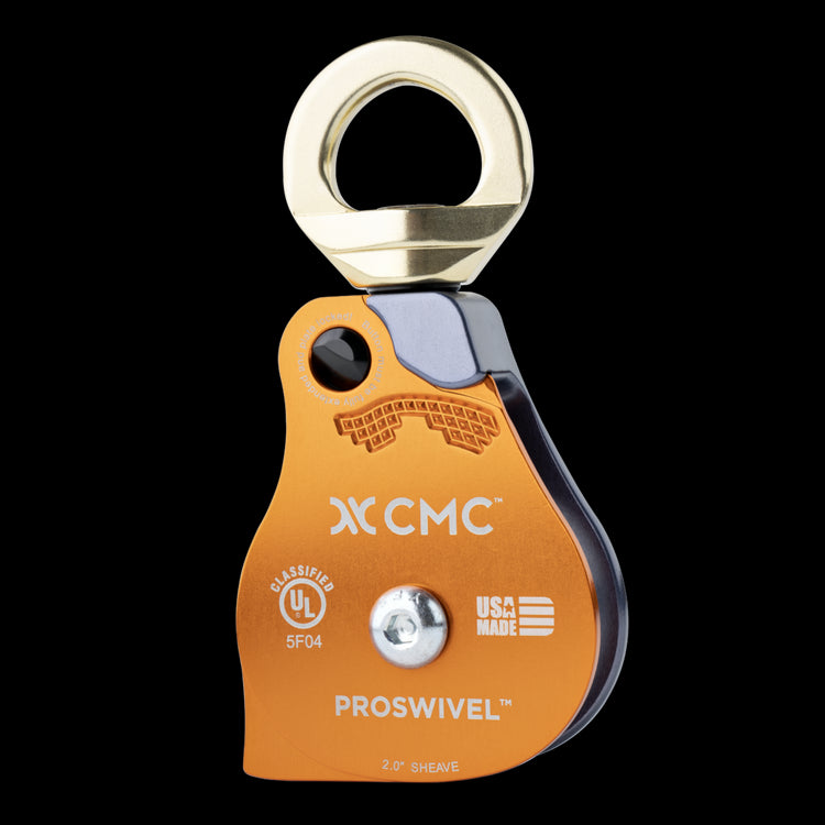 The CMC ProSwivel Pulleys combine a swivel and pulley into one tool with a unique sideplate that opens while the pulley is still attached to the anchor. Teaming up with Rock Exotica, CMC now offers more swivel pulleys certified to NFPA standards. Our renamed and expanded ProSwivel line includes eight pulleys to choose from. You can pick the best CMC ProSwivel Pulley for the job, going bigger when you need more efficiency.