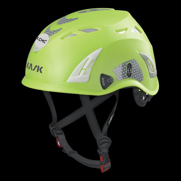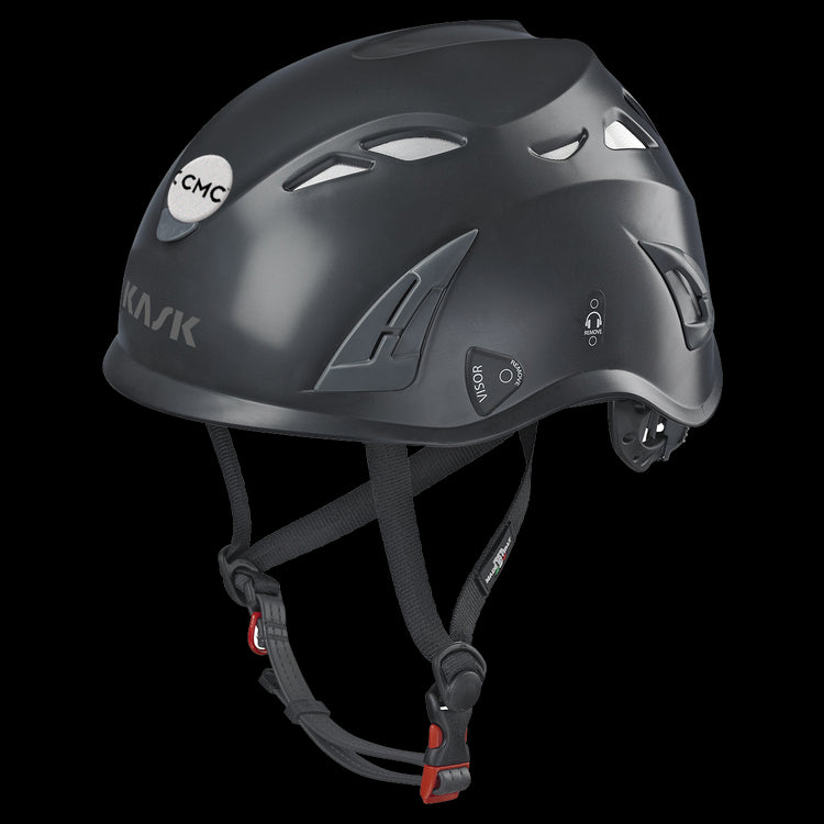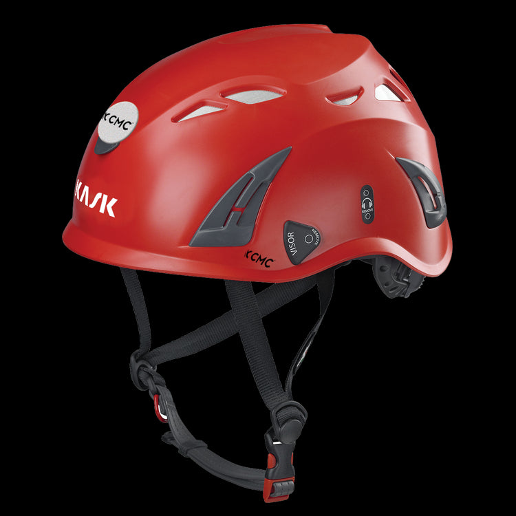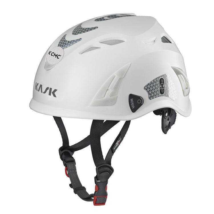 The Kask SuperPlasma HD helmets have been specifically designed for professional rescue and work-at-height applications provide the ultimate in head protection! They are lightweight, compact, amazingly comfortable and well-ventilated with 10 air intakes, equipped with protective aluminum anti-intrusion grills to deflect debris and water. Soft polyethylene side retractors regulate length of the straps, with a special red-colored ring on one for fastening the helmet to a harness.Works perfectly with the CMC Sunbrero!