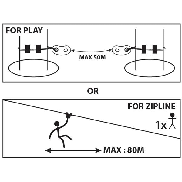 The principle of operation is very simple: the hook's opening is smaller than the diameter of the cable, but greater than the thickness of the plates. In this way, safety is guaranteed. Once you enter the lifeline, it is impossible to accidentally disconnect before the end of the course. Only by a special key supplied to the manager of the park, it is possible to unlock the sleeve and then make ultra-rapid evacuations in case of illness, storm, fire, etc... Thanks to the various components, it is possible to secure all steps and the various games of your park, such as rope jumps, with the new ZAZA 2 Connect. Coudou Pro system will allow you to save on surveillance staff costs and ensure better security for your customers.