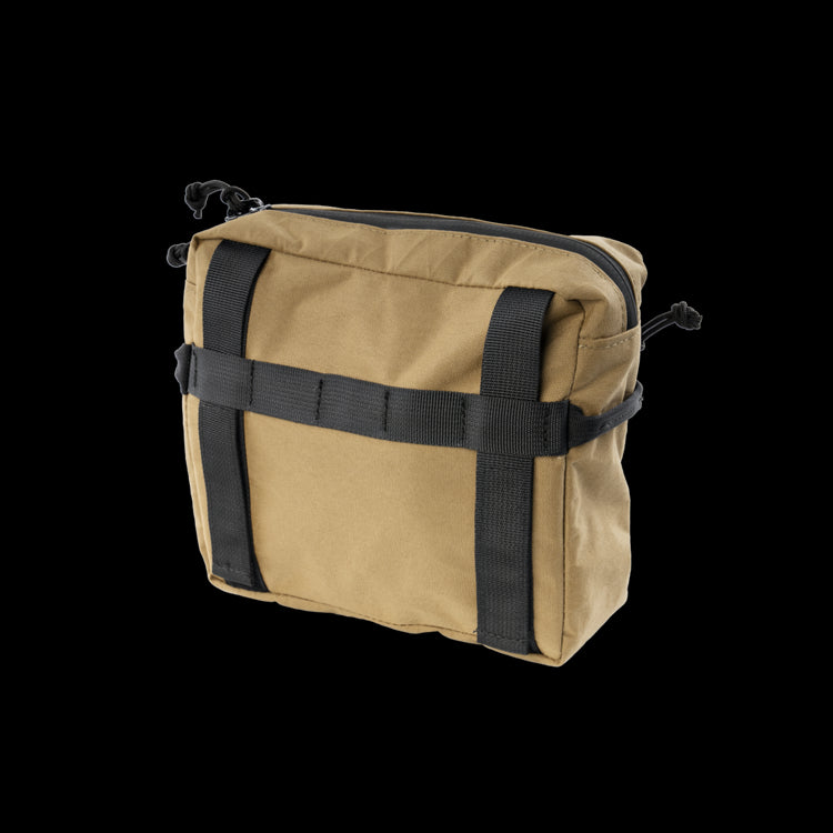 A versatile, water-resistant, molle-compatible Pouch for carrying essential equipment. The Outback Pouch has velcro straps for attaching to packs, structures, or belts like the Waist Belt of the Outback Convertible Harness. Made for organizing and carrying personal kit, the Outback Pouch is sized for carabiners, cord, web, and rope devices. It features a zippered front pocket for cell phones and GPS, and provides gear loops on each end for stowing hardware when roped up. The Outback Pouch is a comfortable, streamlined tool for keeping important items close at hand.