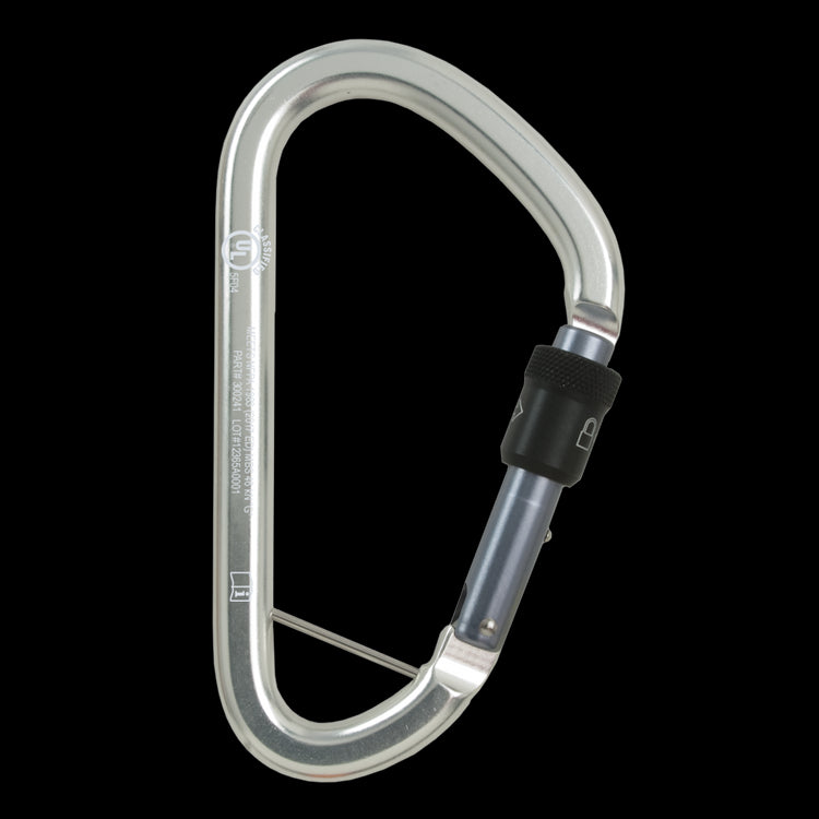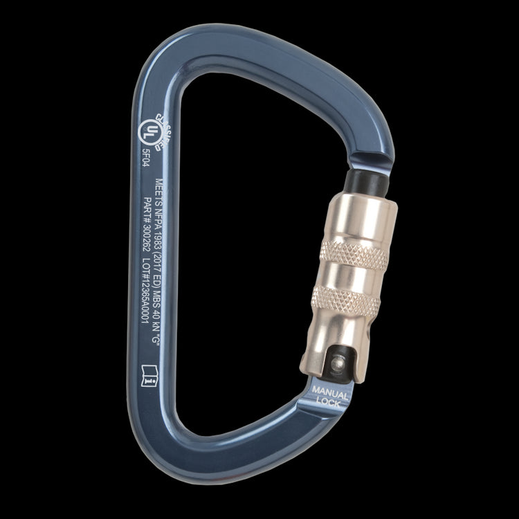 Rescuers working in the most demanding circumstances will appreciate our ProSeries Aluminum Carabiners, the first aluminum carabiners to meet NFPA strength requirements for general use. Combining high performance with minimum weight, these carabiners significantly reduce the weight of a rescuers gear while maintaining the highest possible margin of safety. The patented key-lock design eliminates snagging when removing the carabiner from your harness, and a redesigned gate provides a full 1.1 inch (28 mm) opening on the standard size version and a 2.1 inch (53 mm) opening on the XL version. Gate choices include the traditional Screw-Lock, our easy-to-open-with-one-hand Auto-Lock, our innovative Manual-Lock, and an ANSI-certified (Z359.12) gate. All of the XL carabiners have a removable keeper pin.