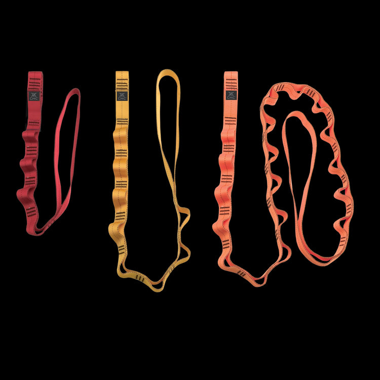 Made of 1-inch (25-mm) mil-spec tubular web, these straps allow you to tie into your anchor with just the right length of web. Theyre also handy for clipping several carabiners into one anchor point. Pocket stitching breaks at 5 kN (1,100 lbf). Available in 3 sizes.