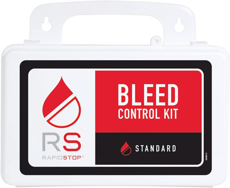 This kit includes the patented RapidStop® Tourniquet which represents a hemostatic trauma solution with military-grade ruggedness, all age suitability, superior single-handed application and the fastest average occlusion time. A severed brachial, radial, or ulnar artery, presents a limited window of time before the decreasing blood pressure renders the injured unconscious. Shock can set in even sooner. Achieving full occlusion in the shortest time possible is critical. Faster application means faster stabilization, increasing chances of survival. Durable weatherproof plastic case included.
