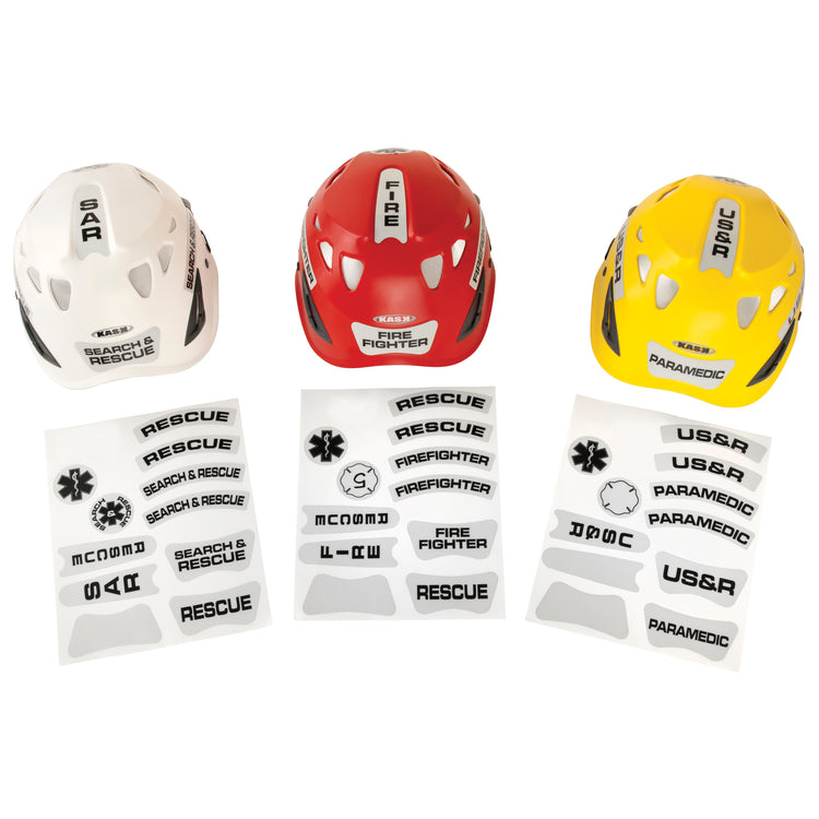 Customize your KASK rescue helmet while adding increased night visibility. Decals are manufactured from high-quality 3M reflective material and die-cut for easy installation. Decals have been tested and approved for use by helmet manufacturer. Available in three styles; FIRE RESCUE, USAR and SAR.