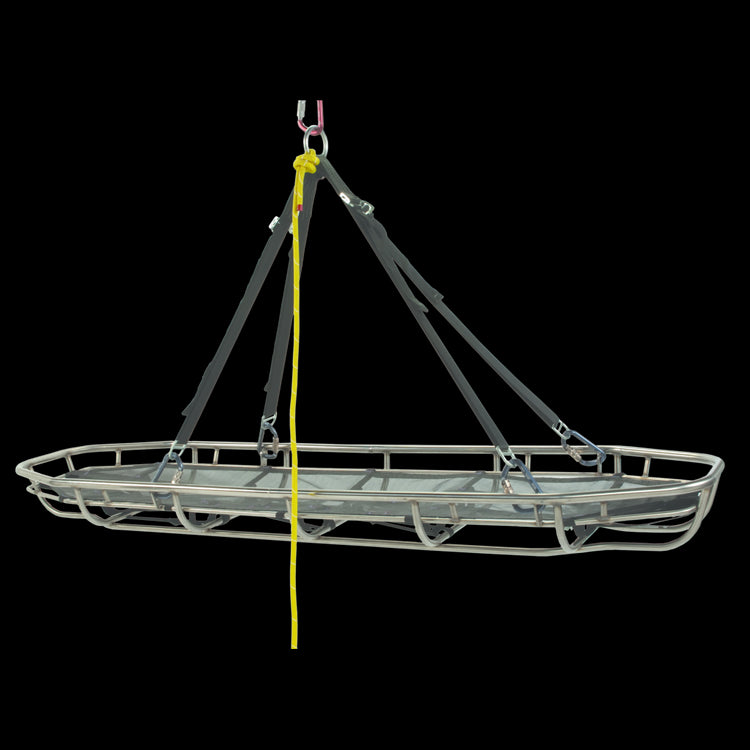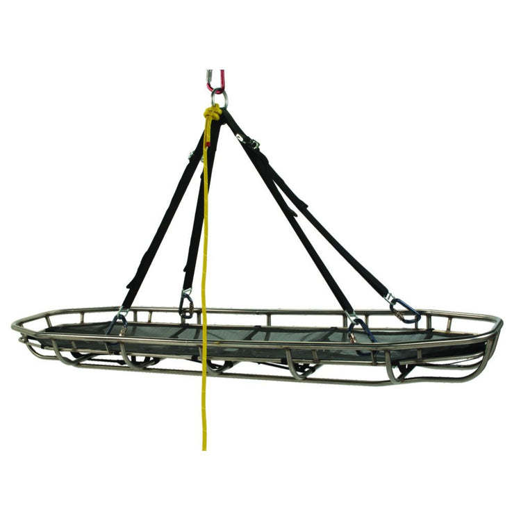 This fully adjustable litter harness intended for use with a rigid litter features parachute buckles on each of the four legs. This allows them to be adjusted independently, so the litter can be quickly and easily set at the best angle for condition or patient comfort. A heavy duty O-ring is used for the top tie-in point and a 10-ft (3-m) tender line (CMC Static-Pro Lifeline) and a nylon storage bag are included. Carabiners not included.