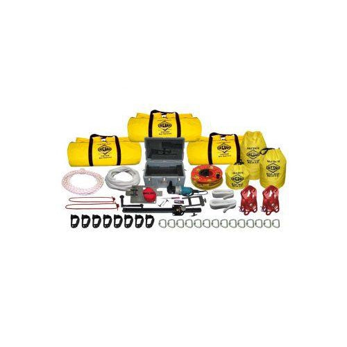 This system includes everything necessary for rapid evacuation of mass casualties in a biochemical environment. Because we never know how far away we can get from the Hot-zone, the kit includes continuous loop twisted polypropylene ropes, 1 each for distances of 100ft, 150ft, and 200ft. This kit allows as many as 4 rescuers in level A. There are also 4 clean Skeds for moving patients from the warm zone to decon to prevent dragging contaminated litters outside the area. Instructional video or cd-rom included. This kit consists of: